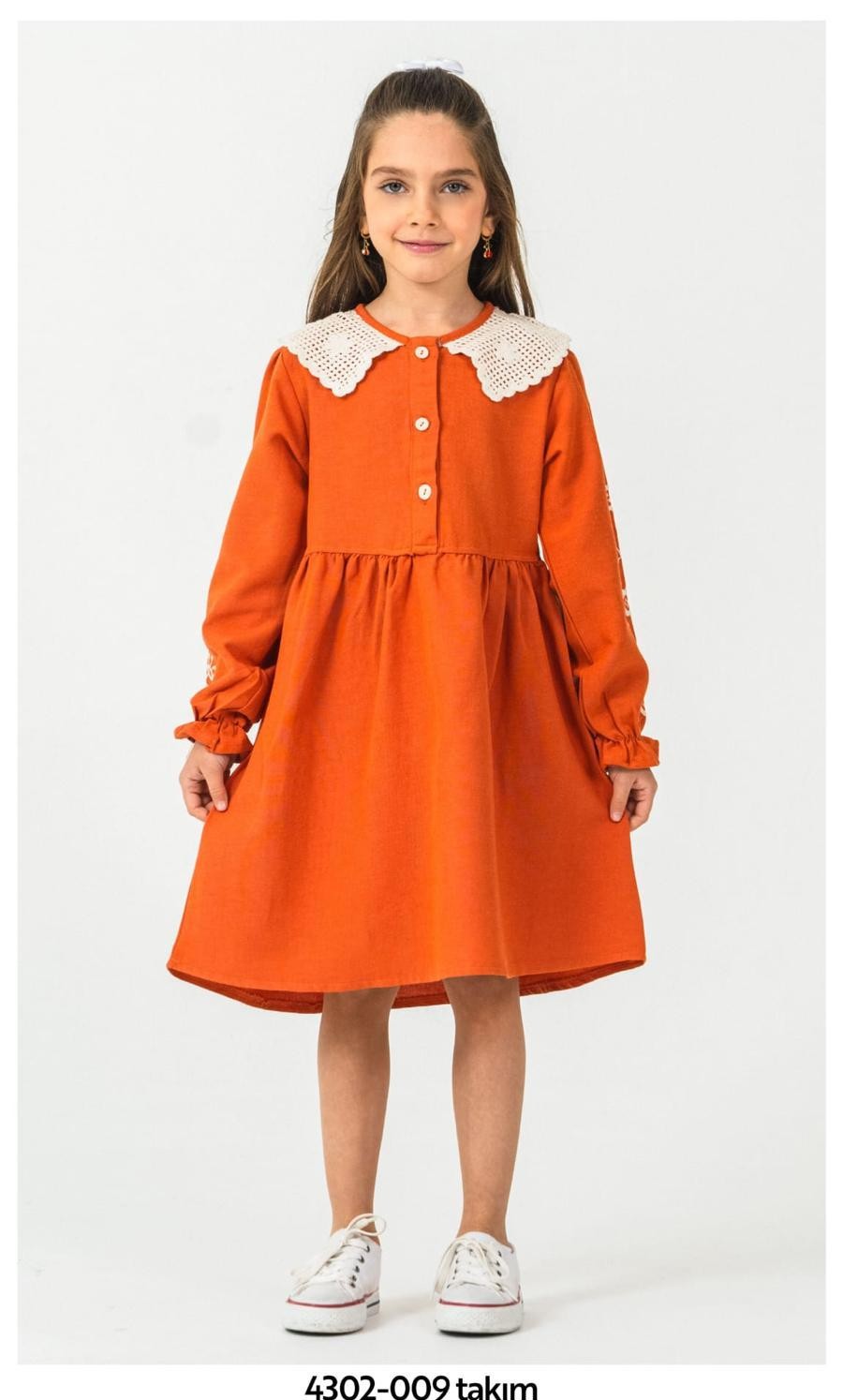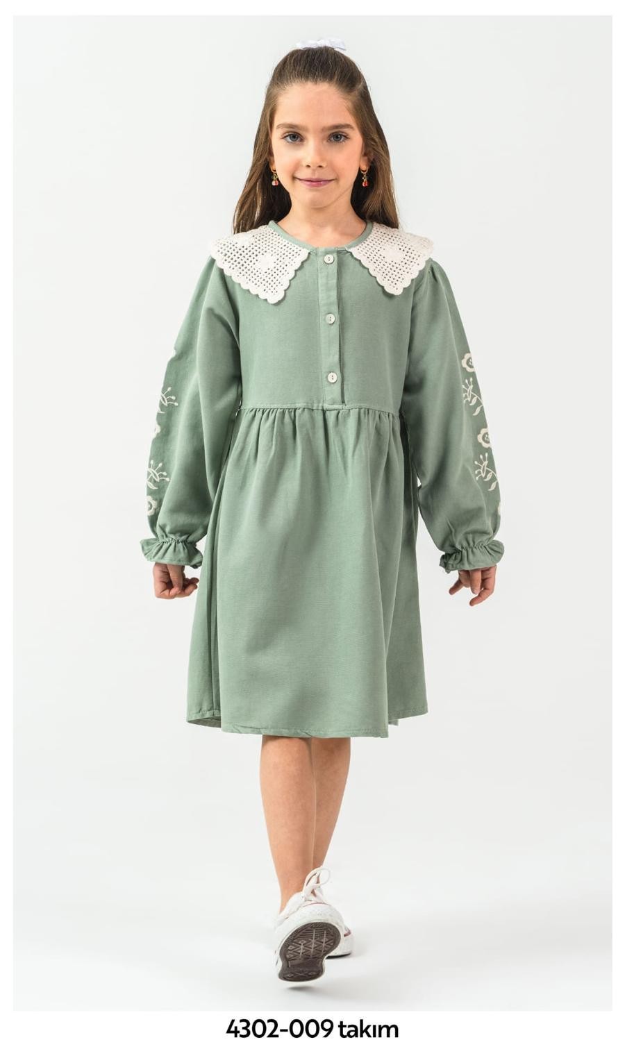 - Model: Modern kesim ve dantel detaylarıyla hem şık hem de zarif bir görünüm oluşturur. Elbisenin etek kısmındaki dantel detayı, hareket etmekte olan çocuklar için bile zarif bir görünüm sağlar.
