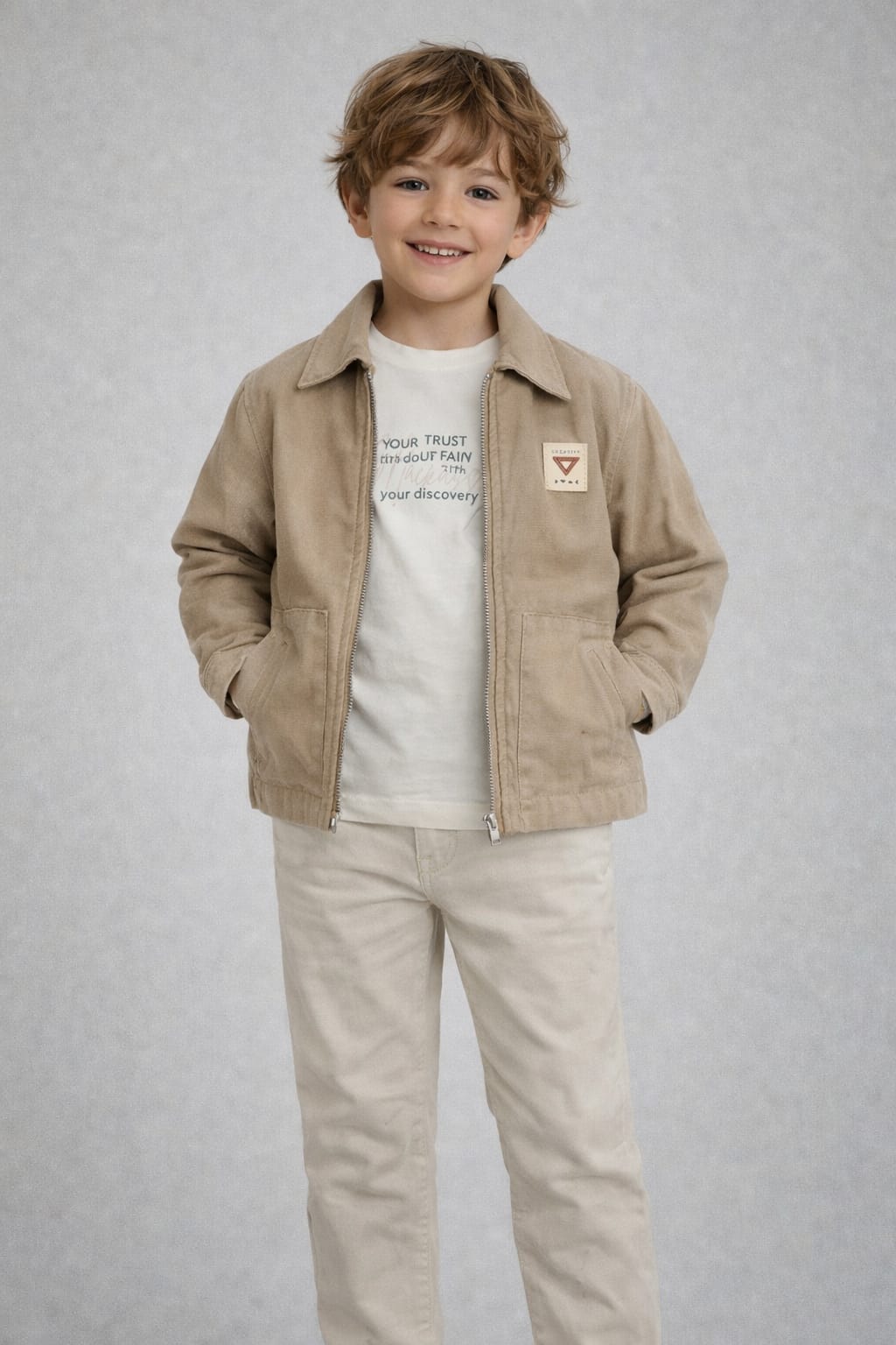 - Kot Pantolon: Takımın tamamlayıcı unsuru olan kot pantolon, esnek yapısı ile hem konfor hem de kullanım kolaylığı sunar. Modern kesimi sayesinde, çocuğunuzun şıklığını pekiştirirken, hareket özgürlüğü sağlar. Cepli tasarımı ile pratiklik ön plandadır.