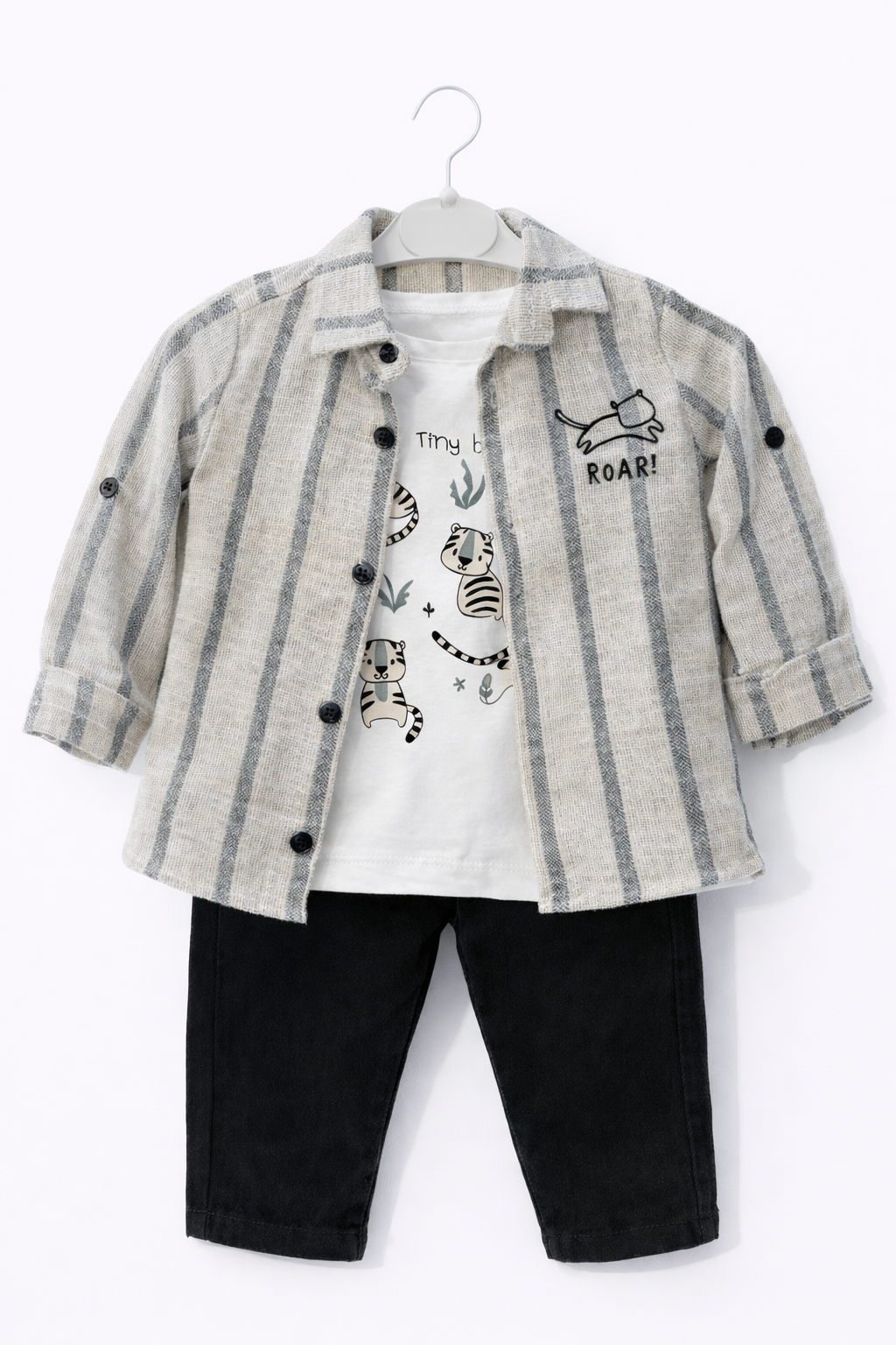 Bebecan Gömlek-Tişört-Pantolon Takımı, şık tasarımı ile her ortamda kullanıma uygundur. Doğum günleri, piknikler veya günlük gezintiler için ideal bir seçimdir. Kombinlenebilir parçaları sayesinde, başka giysilerle de uyum sağlar. Renk geçişleri ve desenleri sayesinde bebeğinizin tarzını yansıtırken, aynı zamanda sevimliliğini ön plana çıkarır.