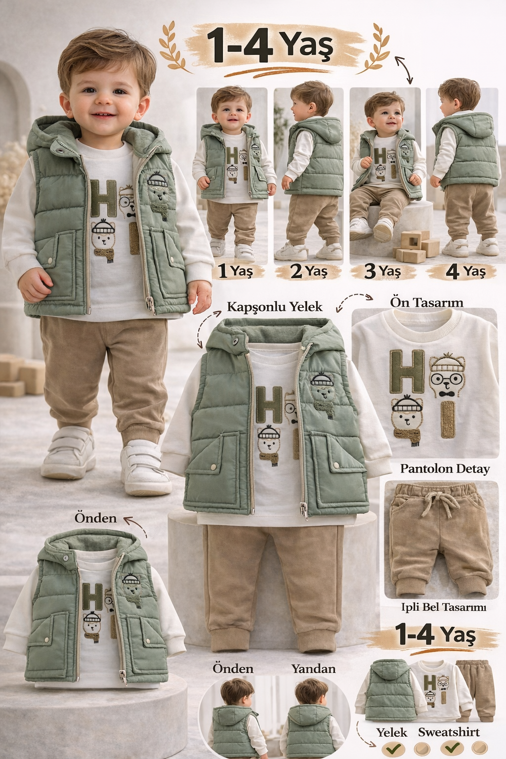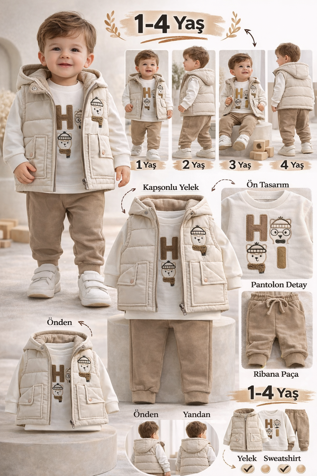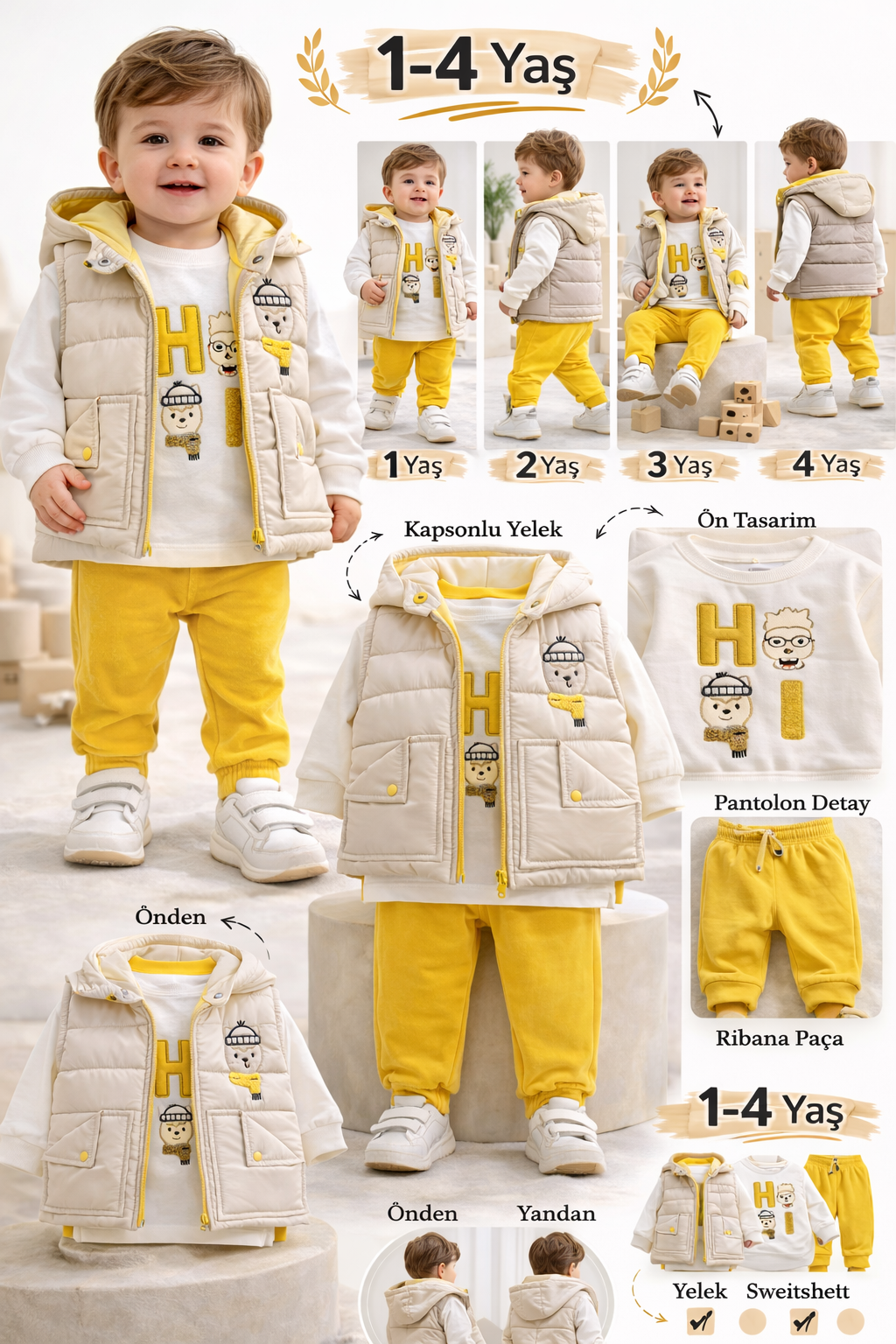 BEBECAN ŞİŞME YELEK-BADİ-PANTOLON 1/4 YAŞ 3'LÜ TAKIM