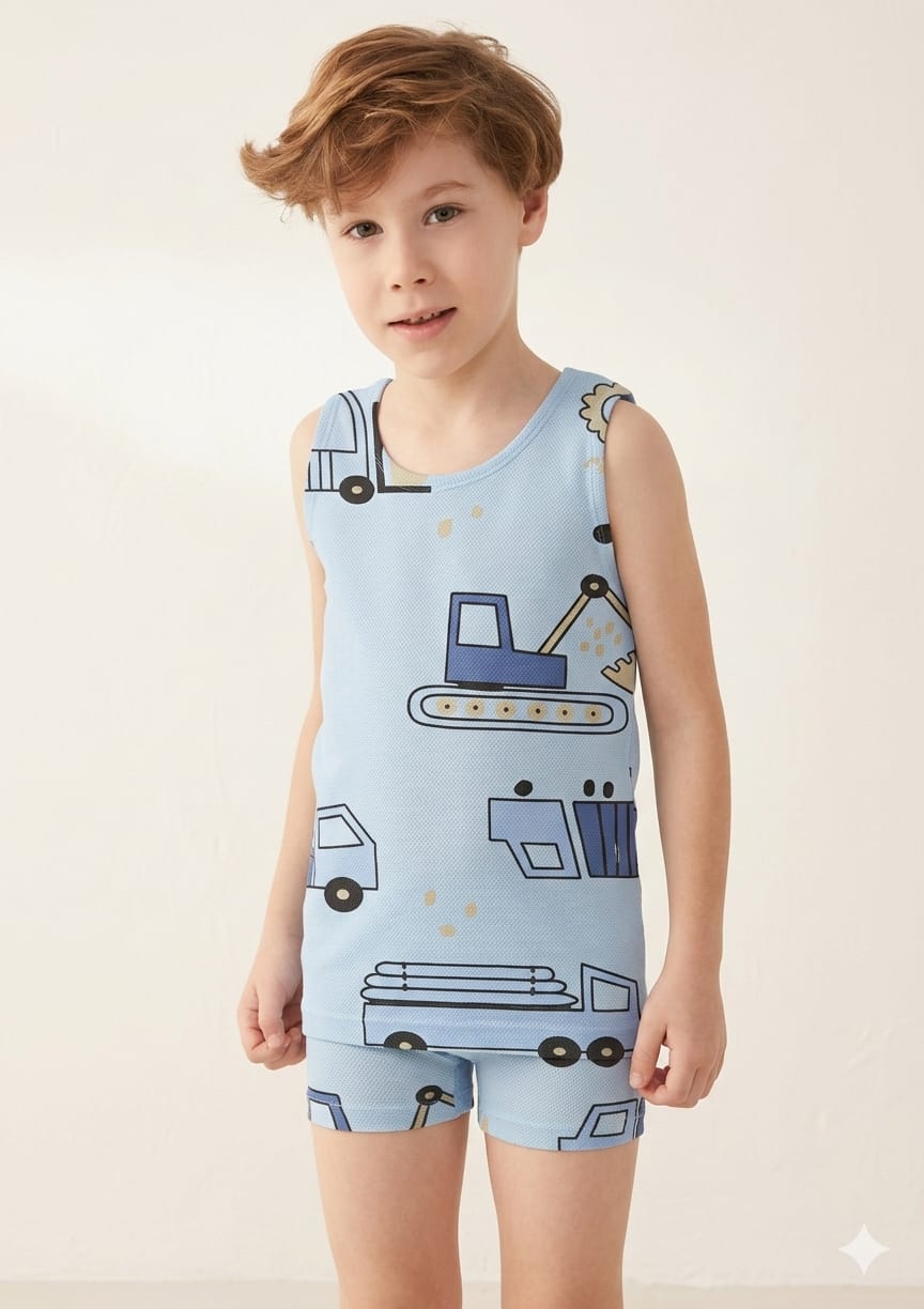 POLİ ERKEK ÇOCUK İÇ GİYİM DESENLİ İKİLİ TAKIM